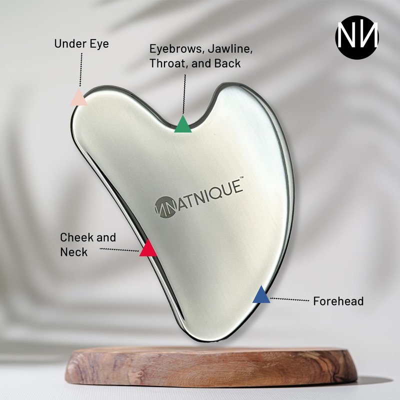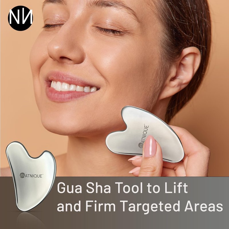 - Lifts and firms targeted areas - Target specific areas with a unique design and contours of our gua sha tool. Apply the perfect amount of pressure to your back, neck, shoulders, jaw lines, brow lines, and facial muscles. Our stainless steel gua sha tool is safe and effective for all skin types. It helps lift and firm skin.