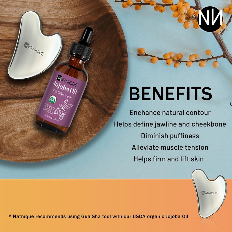 - Self cooling Gua Sha - Our body gua sha tool is made from a completely self-cooling material. There is no need to put it in the freezer to cool, use it directly with your choice of massage oil. Natnique recommends our USDA organic Jojoba or Rosehip oil to use with our gua sha tool.