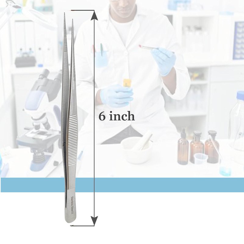 Stainless Steel High Precision Forceps with Fine Strong Straight Serrated Point to use Engineer Labware for Scientific Use 6" (15.2 cm), (6 Inch)