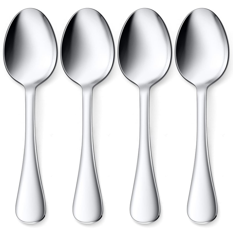 Stainless Steel Serving Spoons, E-far 4-Piece Metal Solid Spoons Hostess Serving Utensils Tablespoons Set for Catering Buffet Party Kitchen Restaurant, Dishwasher Safe