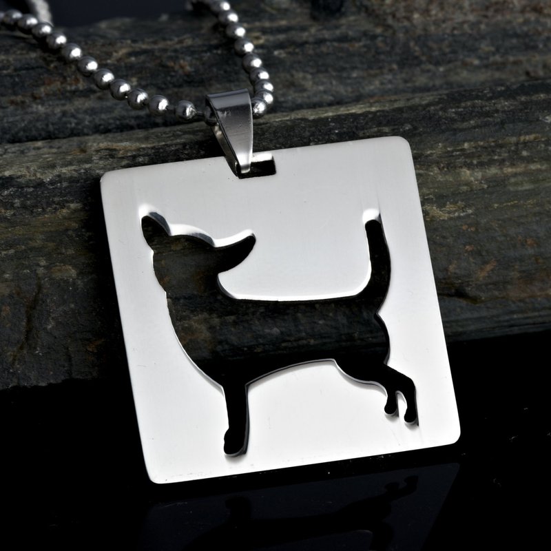 Stainless Steel Square Shaped Chihuahua Silhouette Dog Silhouette Pet Dog Tag Breed Collar Charm Pendant Necklace