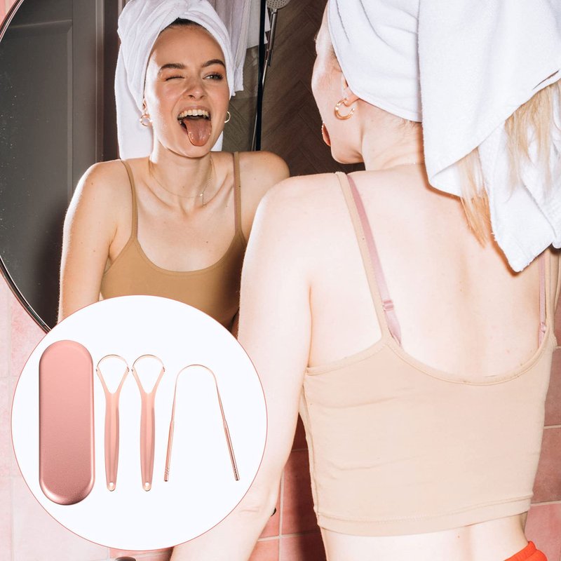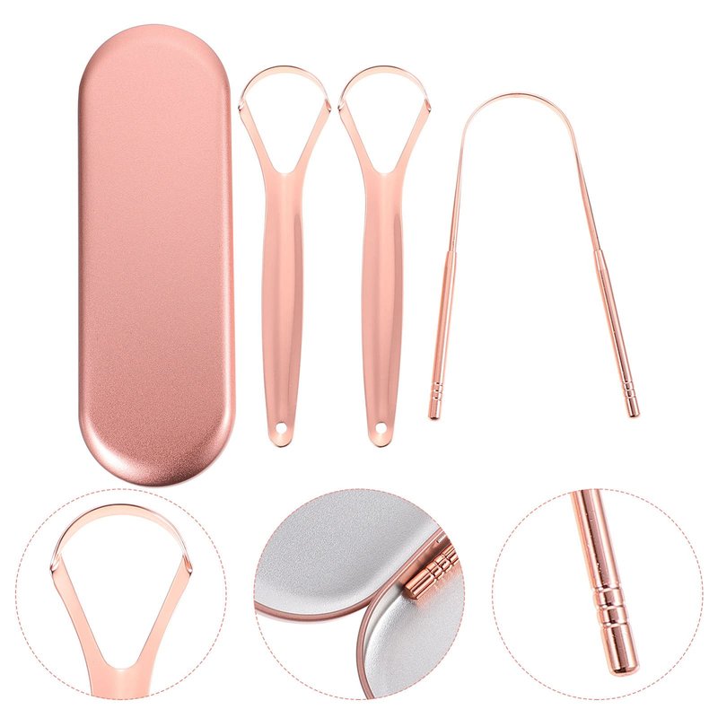 - 3Pcs Tongue Cleaners Healthy Oral Care Tongue Reusable Scrapers ( Rose Gold )