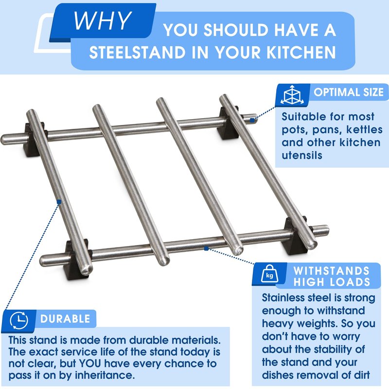 - Exquisite Design of Stainless Steel Pot Stand: These pot holders heat resistant have super elegant design bring the simple but luxurious kitchen decor to the dining table also to countertop of your kitchen.