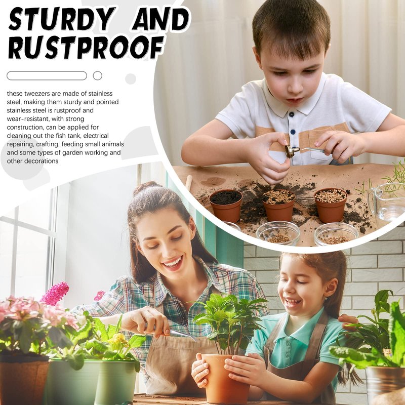 - Sturdy and rustproof: these tweezers are made of stainless steel, making them sturdy and pointed, stainless steel is rustproof and wear-resistant, with strong construction, can be applied for cleaning out the fish tank, electrical repairing, crafting, feeding small animals, and some types of garden working and other decorations