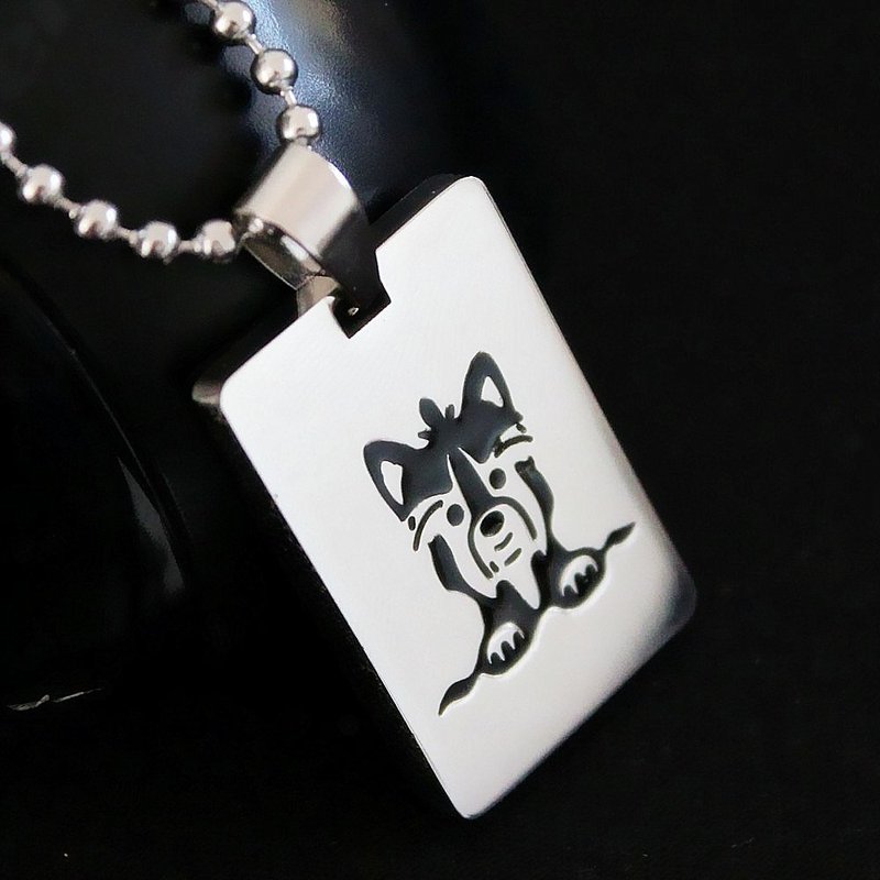 Stainless Steel Yorkshire Terrier Yorkie Pet Dog Collar Tag Pendant Necklace