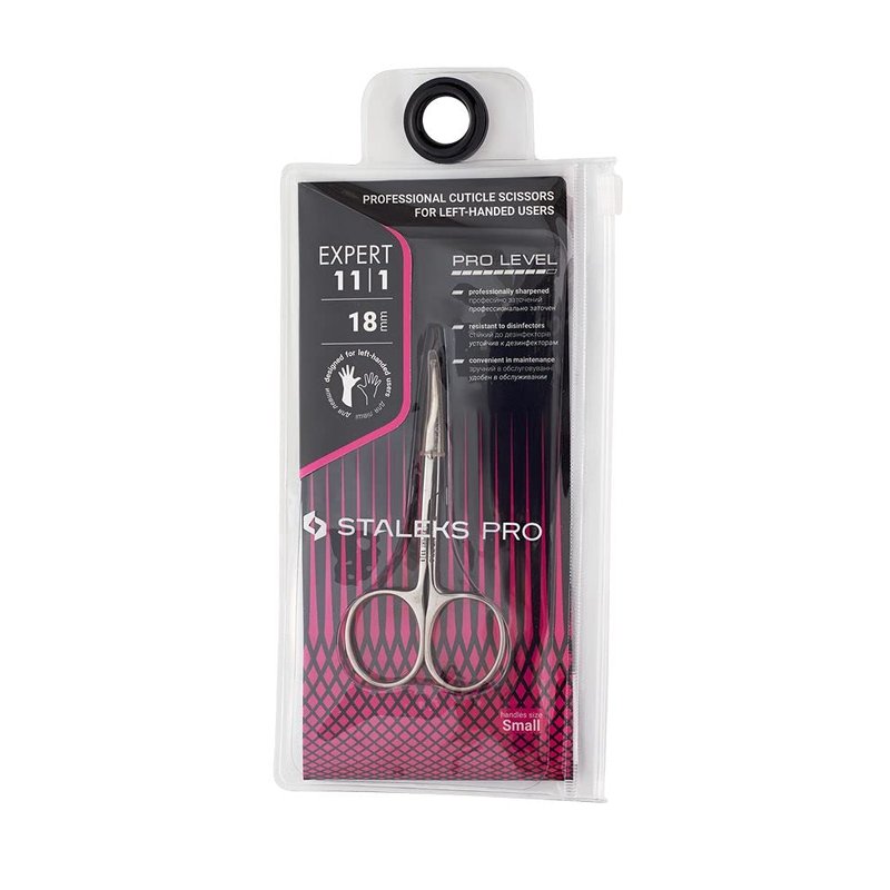 Staleks Professional Cuticle Curved Left Hand Scissors Stainless Steel Manicure Pedicure Care Tools Nail Beard Eyebrow Eyelash Trimming PRO EXPERT 11 TYPE 1 (18 мм) (SE-11/1)