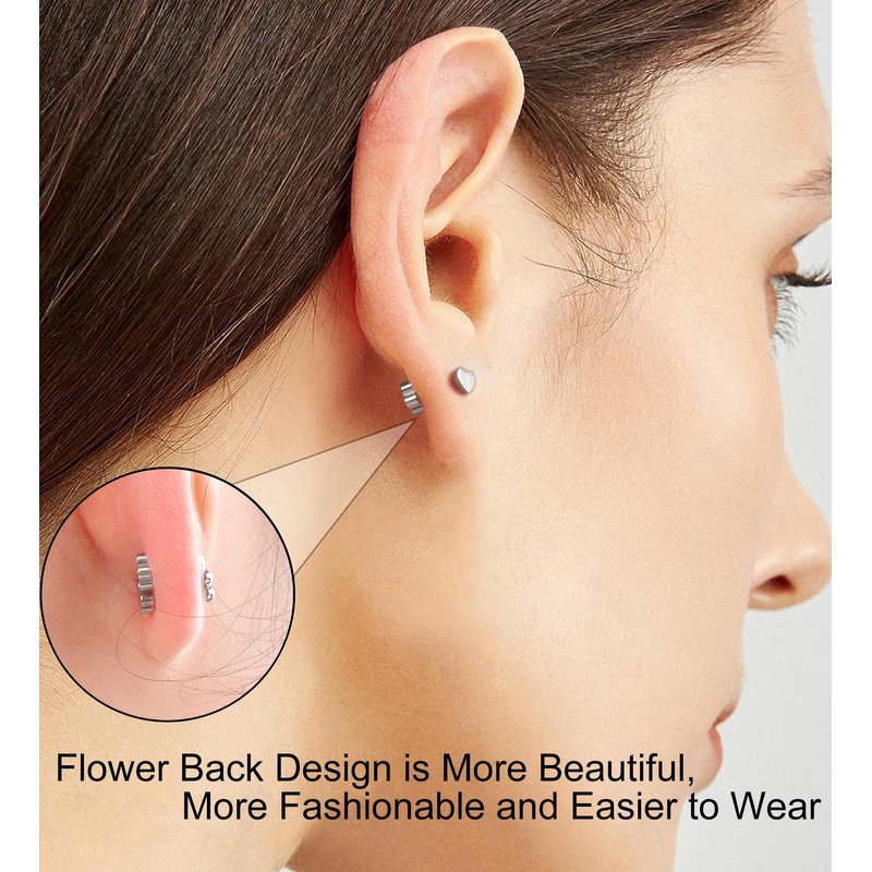 - Flower Back Earrings-----Combination of flower back and screw back design, comfortable and Fashionable to wear.Not easy to fall off!!! Comfy flat back earrings remove the pain and hassle of traditional earrings. Now you can comfortably SLEEP, SHOWER, PLAY in your earrings.