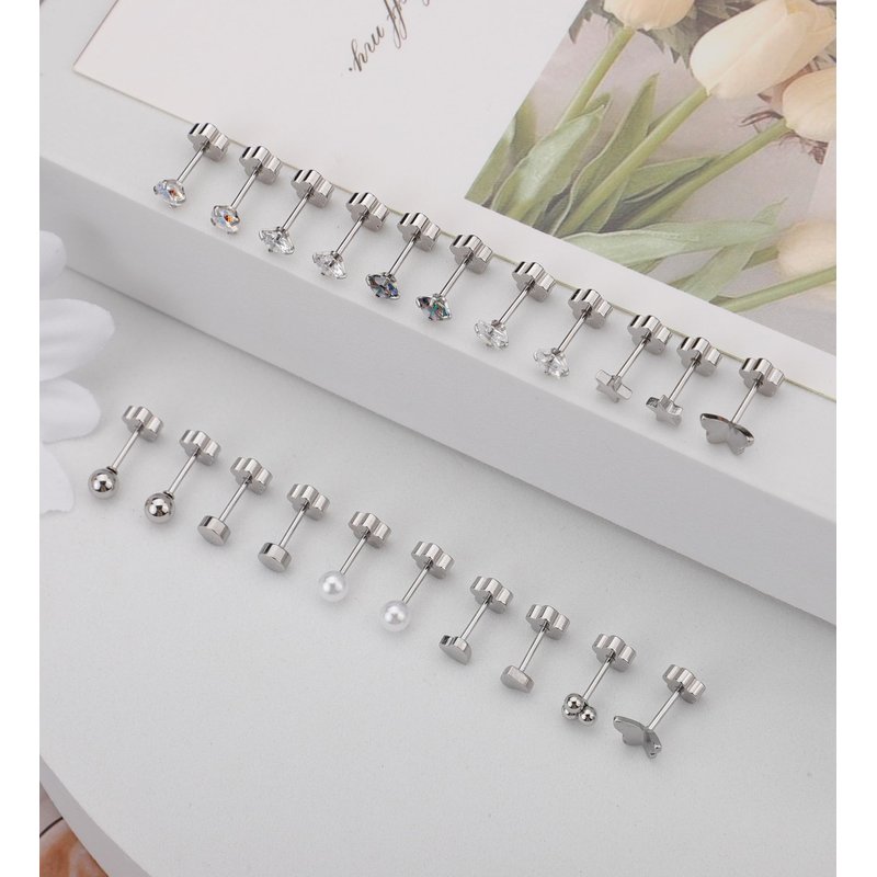 - Hypoallergenic Stud Earrings Set Gauge Size-----The bar thickness of stud earrings is 20G(0.8MM), Post Length mm.Gauge:20G(0.8mm) pin thickness, Post Length:6mm. Pearl/Opal/Ball/Dot/Cubic Zirconia:4MM; flower:7mm, butterfly:5*7mm. Well-fitted and Stackable, A Solid Choice for People Who Have Many Ear Piercings, also Popular as Cartlidge earrings studs.