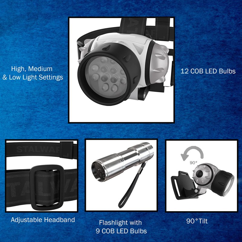 Stalwart - 75-SP139 LED Headlamp, Adjustable Headband and Flashlight Set, Battery Operated 48 Lumen LED Bulbs, for Camping, Running, Hiking, and Emergency by