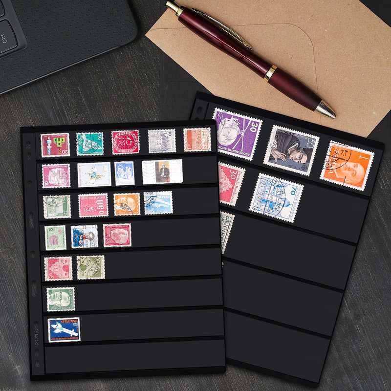 - SUPERB CRAFTSMANSHIP - The black page is one-piece hot-pressed and has no traces of splicing, so that it will not be easily torn. This 9-hole loose leaf is suitable for most stamp album clips