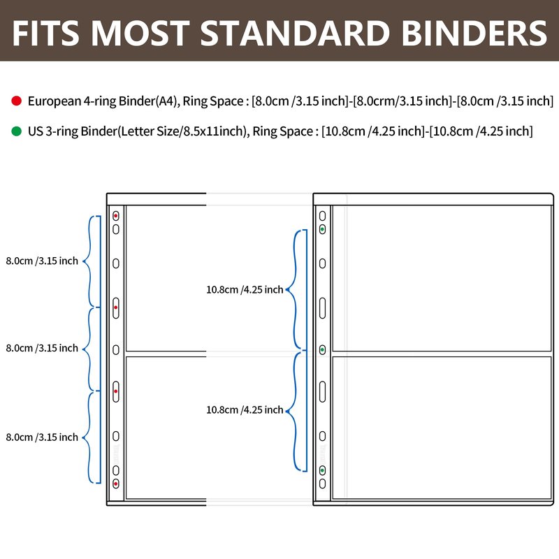- POCKET DIMENSION - 30mm/1.18in (8pockets per page), 35mm/1.35in (7pockets per page), 40mm/1.57in (6pockets per page), 50mm/1.97in (5pockets per page), 62mm/2.44in (4pockets per page), 85mm/3.35in (3pockets per page)