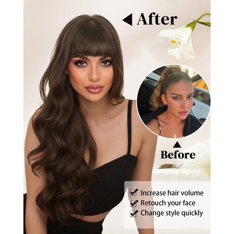 - 【Economical and Widely Used】This fluffy wig with bangs is perfect for daily use, Christmas parties, Halloween,theme weddings, date concerts, etc. Comb it with your fingers or a wide-toothed brush the first time you wear it, or spray some diluted hair conditioner on it to make it even better.