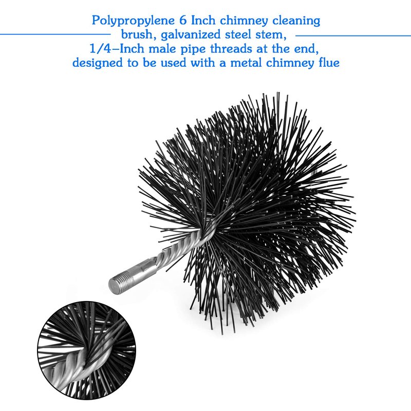 - 【Package Include】1 piece polypropylene 6-inch chimney cleaning brush with galvanized steel stem.
