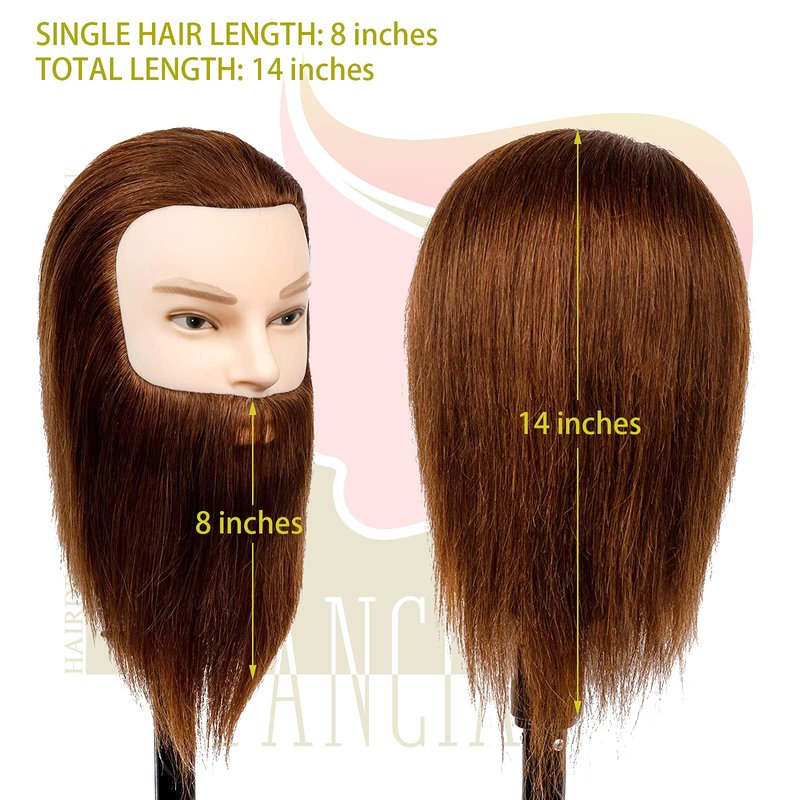Stancia Mannequin Head, Male Mannequin Head Especially for Barber, Training Head with 14” 100% Human Hair, Manikin Head for Hair Styling and Practice (with Beard)