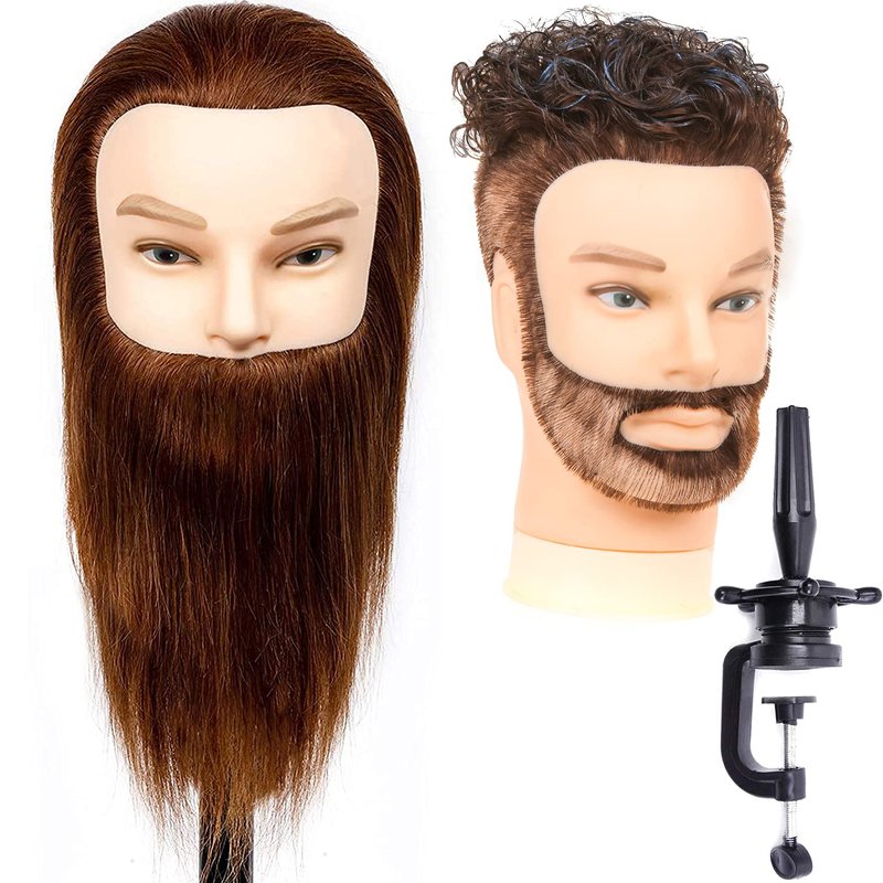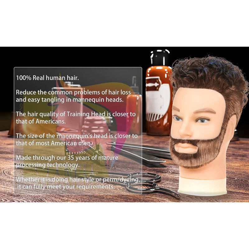 1 * 100% Human Hair Male Mannequin Head with Beard