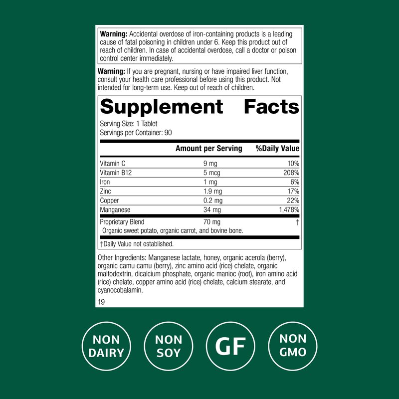 - Blood Health Supplement with Copper: Manganese B12 contains manganese and vitamin B12 to support enzymatic functions; this supplement is an excellent source of copper and a good source of zinc and antioxidant vitamin C*