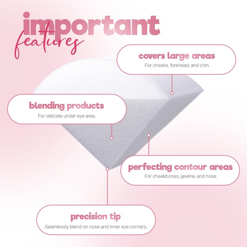 - VERSATILE MULTI-FUNCTIONAL DESIGN: This beauty sponge's unique design serves every contour of your face with precision. Whether you're perfecting large areas like cheeks and forehead or tackling intricate spaces around the nose and under the eyes, it's your go-to for a flawless finish.