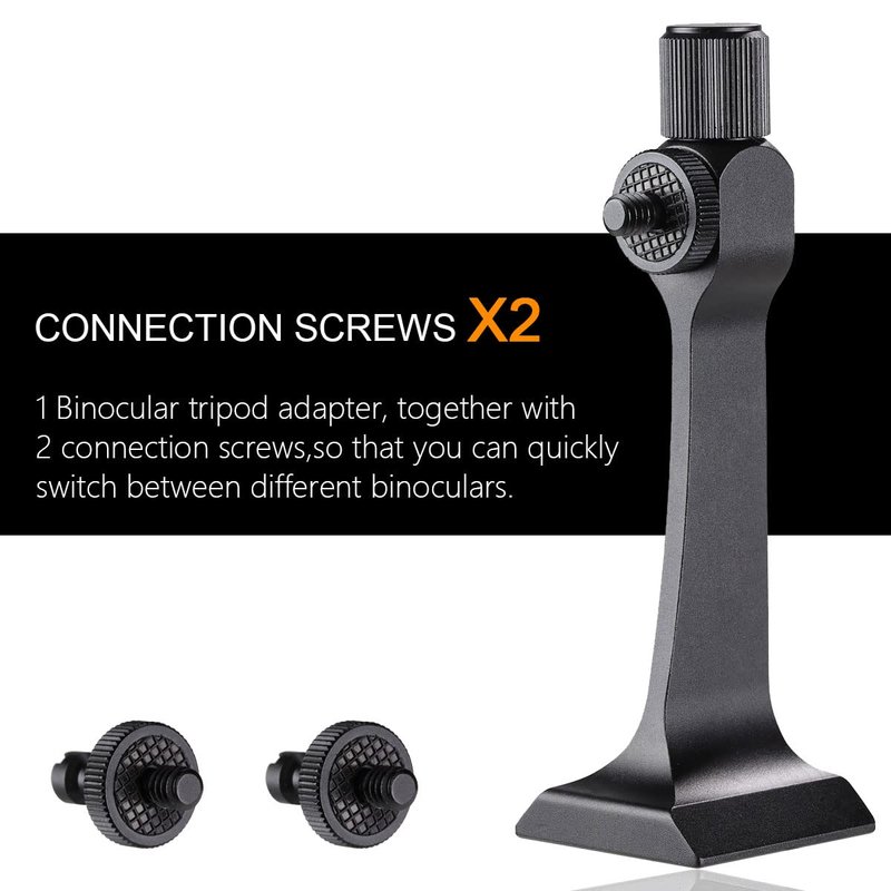 - 【2 CONNECTION SCREWS】1 binocular tripod adapter(main body) with 2 connecting screws,so that you can quickly switch between different binoculars.The top connection screw is only 1.063 inch,which is safe and won't poke your chest.
