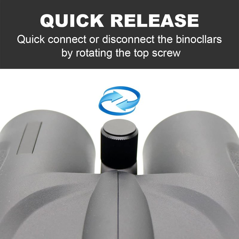 - 【QUICK RELEASE】Rotary the top screw, you can easy connect or disconnect the binoclars and tripod adapter.