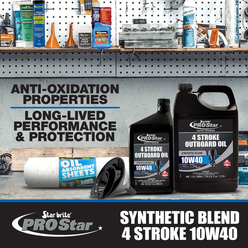 STAR BRITE Super Premium 4 Stroke Marine Oil - 10W-40 Synthetic Blend Engine Oil for Outboards, Gasoline Inboards & Stern Drives - NMMA FC-W Certified, 32 OZ (028232)