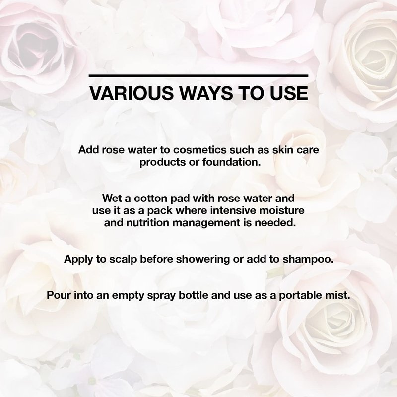 - Ingredient: 100% pure rose floral water (rosa damascena)