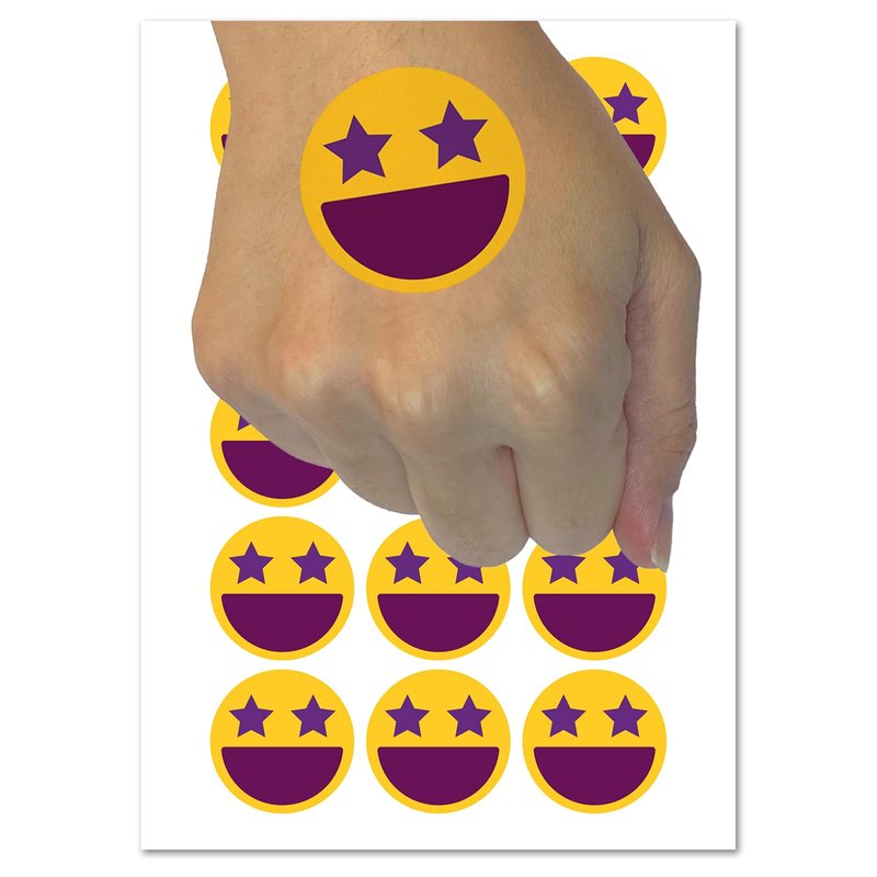 Star Eyes Happy Face Big Smile Mouth Emoticon Temporary Tattoo Water Resistant Fake Body Art Set Collection - 54 1" Tattoos (1 Sheet)