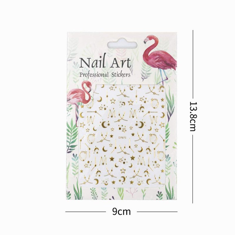 - [Self-adhesive nail stickers] 5 Sheets exquisite metal nail stickers fashionable accessories. 5.43 * 3.54 inches, stars, moon, leaves, constellations, geometric shapes, feathers, stars, moons, lines, chains and letter series design.
