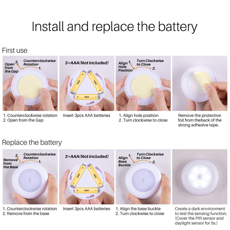 - ☀【PORTABLE DESIGN & WIDE APPLICATION】Compact and portable size makes these motion sensor puck lights ideal for anywhere you need extra light to stick on like kitchen, bedroom, hallway, stairs, basement, attic, garage, laundry area, under cabinet, closet, cupboard, drawer, safe box, mailbox, etc.