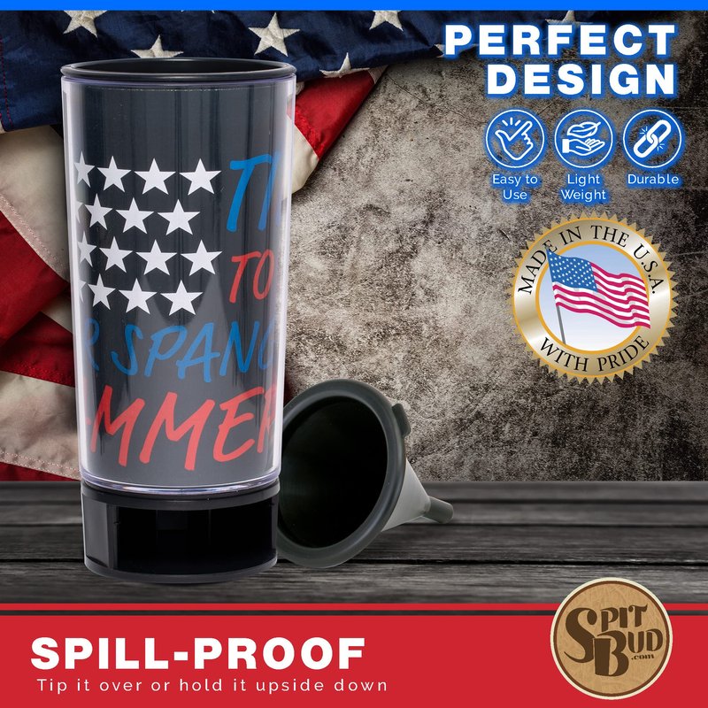 Star Spangled Hammered Spit Bud Portable Spittoon with Can Opener: The Ultimate Spill-Proof Spitter by Spitbud