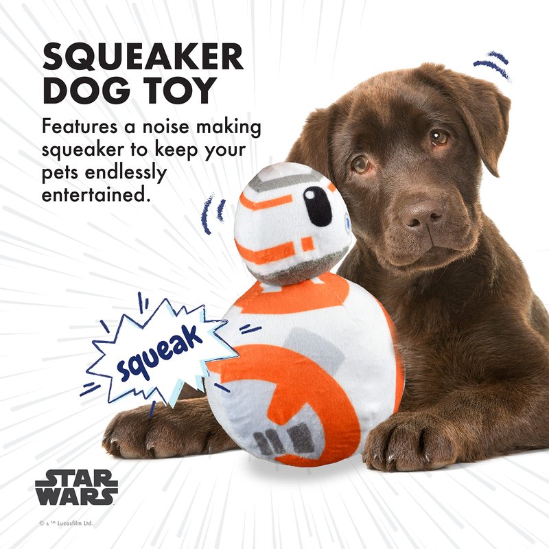 - THE CLEVER LITTLE DROID YOUR DOG WILL LOVE – This dog toy features BB-8 in a 6” plush texture with squeaker inside