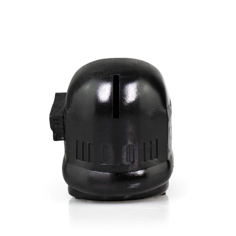 - STYLISH LOOK. This coin bank is stylish, comes in black vinyl, and looks like the Death Trooper’s helmet as seen in Rogue One.