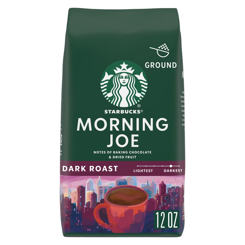 - PREMIUM GROUND COFFEE—Starbucks delivers exceptional coffee cup after cup with this 12-ounce bag of Morning Joe dark roast ground coffee