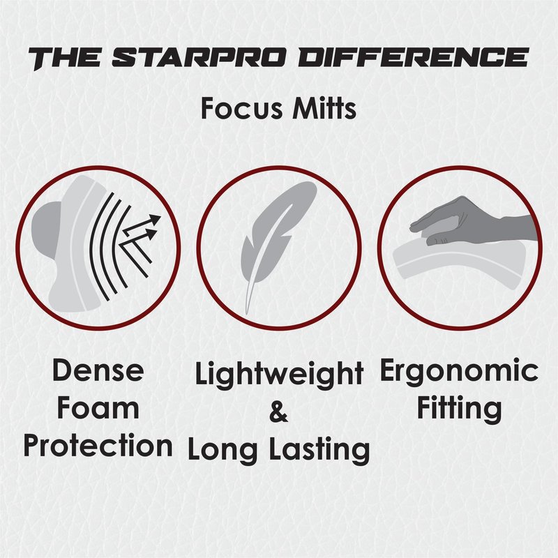 - HIGHLY DURABLE - The poorly stitched materials of other focus mitts boxing of course often lead to them disintegrating and failing you after a few sessions already. Each boxing pad requires robust materials and great craftsmanship. Starpro has been in the boxing business for over a century! If you’re looking for durable and affordable punching pads for boxing you found the right brand! We combined a sweat resistant inner lining with a robust design that’s made to last!