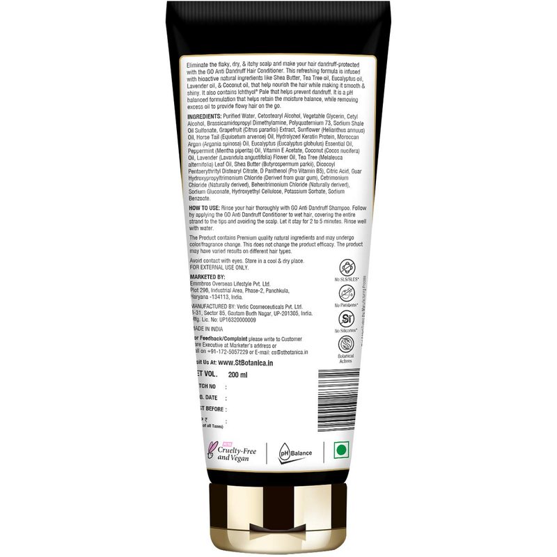 StBotanica GO Anti-Dandruff Hair Conditioner - With Ichthyol Pale, Tea Tree, Eucalyptus Oil, Plant Based Extracts, No SLS/Sulphate, Paraben, Silicones, Colors, 200ml