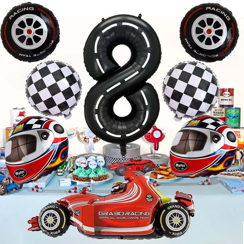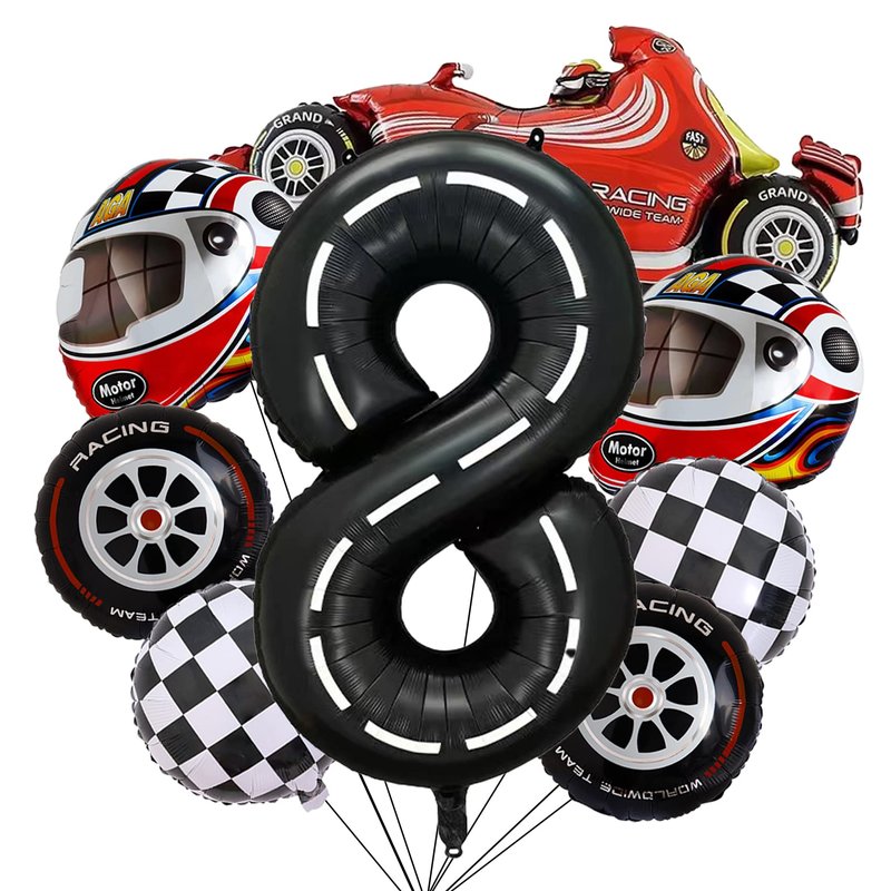 - WHAT’S IN PACKAGE - 1pc number balloon, 1pc race car balloon, 2pcs checkered balloons, 2pcs wheel balloons, 2pcs helmet balloons, 1 straw, 1 curling ribbon (5.5 yd)