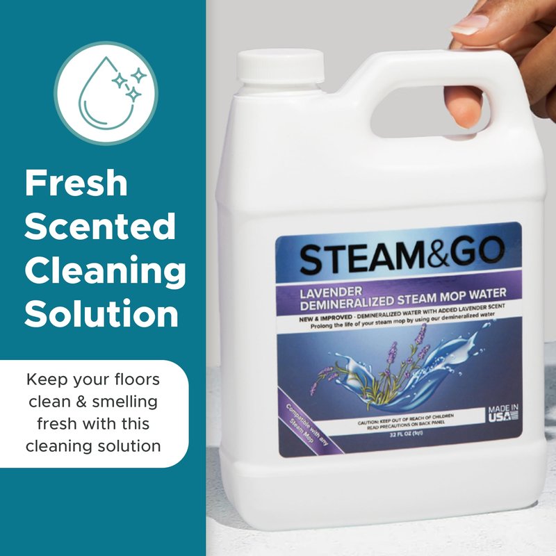 Steam & Go - Demineralized Water for Steam Cleaner, PVC-Free Floor Cleaner Liquid Compatible With Any Mop Steamer, Ready-to-Use Multisurface Cleaner, Scented Mop Solution, Lavender, 32 oz