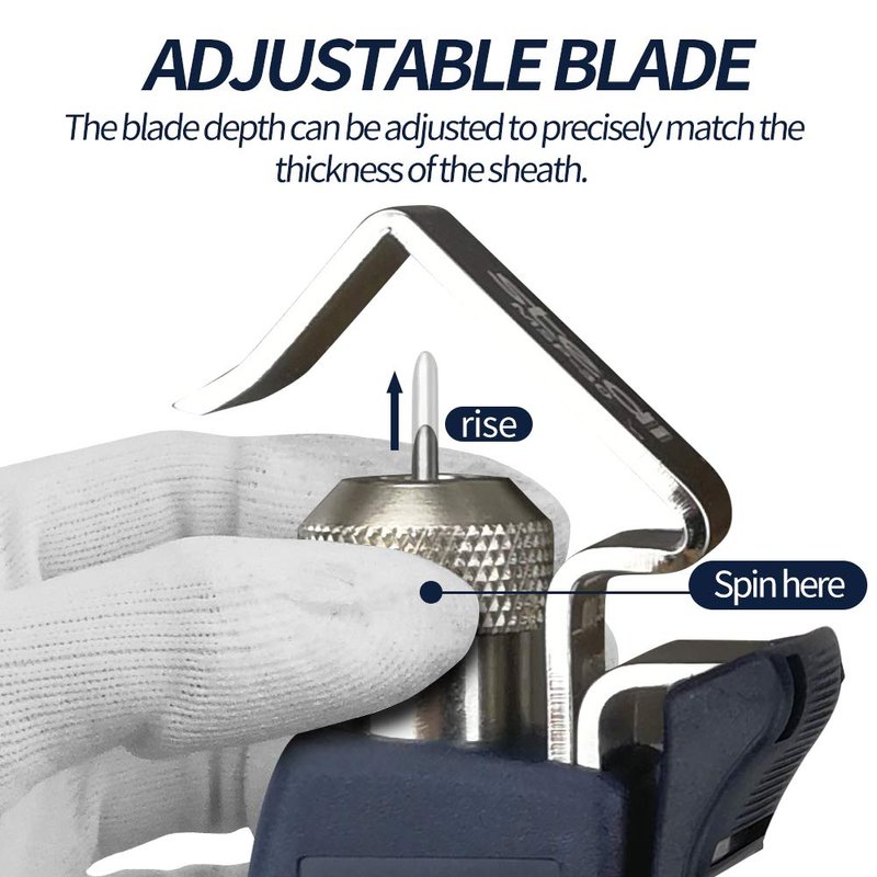 - ADJUSTABLE BLADE: The blade depth can be adjusted to precisely match the thickness of the sheath.