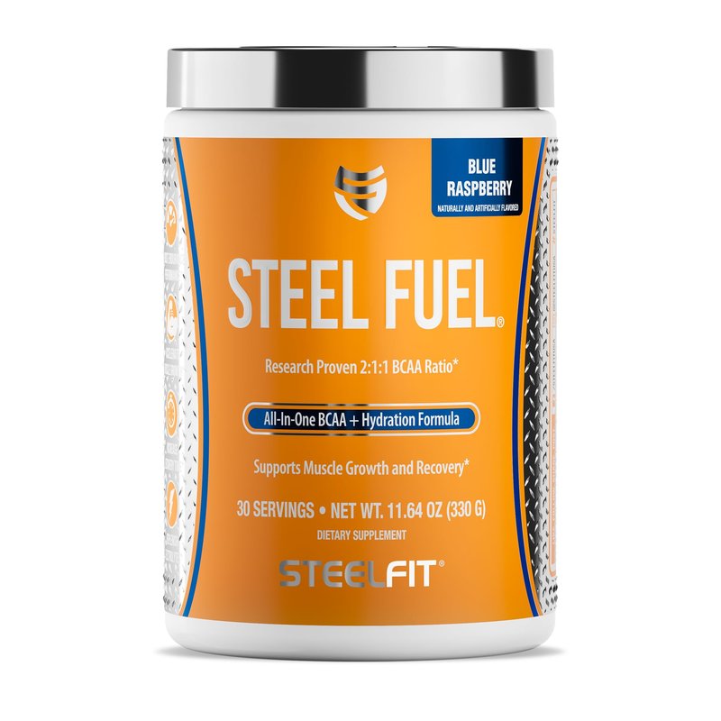 Energizing Hydration Boost Unlock a new level of workout endurance with SteelFit Steel Fuel BCAAs and hydration supplement. This electrolyte-infused formula delivers a potent blend of the three most essential amino acids, the BCAAs or branched-chain amino acids, perfect for sipping. Stay hydrated throughout intense training sessions while replenishing vital nutrients for muscle recovery and growth. Muscle-Building Powerhouse Accelerate your muscle-building goals with this amino acid supplement for women and men. SteelFit Steel Fuel's precise BCAA and ratios stimulate protein synthesis, promoting lean muscle development and reducing post-workout soreness. This comprehensive amino acid powder also provides taurine, another one of the EAAS (essential amino acids) to maintain energy and promote endurance, L-citrulline to combat fatigue and boost circulation for muscle pumps, and L-glutamine for anti-catabolism. It’s an all-in-one workout nutrition solution. Delicious Nutrition Boost Elevate your daily nutrition with SteelFit Steel Fuel's 8 craveable flavors: apple pear, black cherry slushie, blue raspberry, grape soda, lemon lime, pina colada, pink grapefruit, and watermelon lemonade. This no-sugar BCAA hydration powder effortlessly blends with water, offering a refreshing way to nourish your body. Savor the fruity or tangy notes while benefiting from the potent amino acid and electrolyte complex. Fuel your active lifestyle with a tasty and convenient supplement that supports overall well-being. Great-tasting BCAAs amino acids powder Boosts energy and hydration Sugar-free and caffeine-free Improves focus and recovery