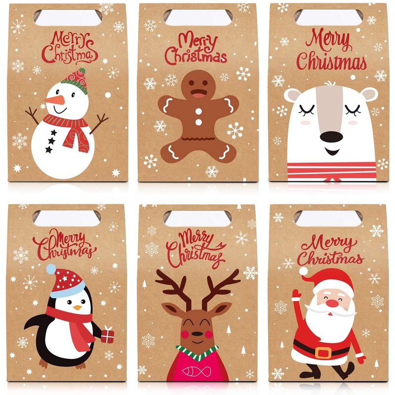 - Novel Festival Design:Christmas treat boxes features 6 cute pattern snowman,Santa,Penguin,Reindeer,polar,each pattern bag 4pcs Bear,Biscuit Man,classic and novel figure with exquisite snowflake print makes it quite a top choice as festival Christmas gift bags during this holiday season.