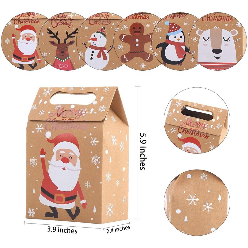 STEFORD Christmas Kraft Paper Gift Boxes,24PCS Christmas Candy Gift Treat Bags for Xmas Party Supplies