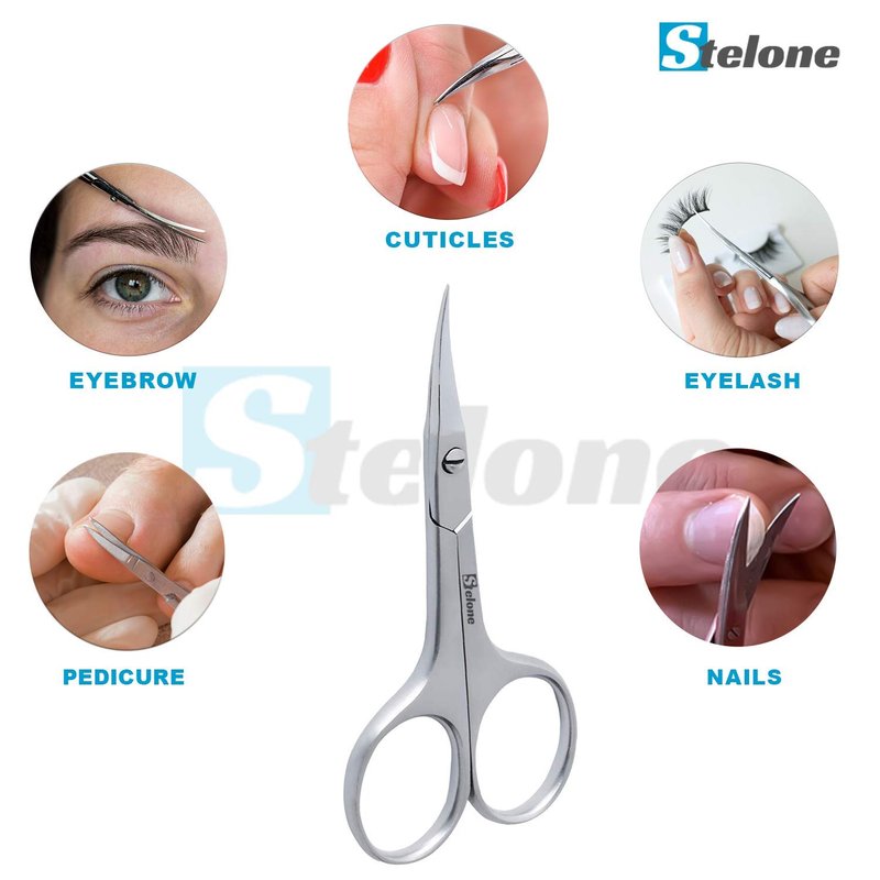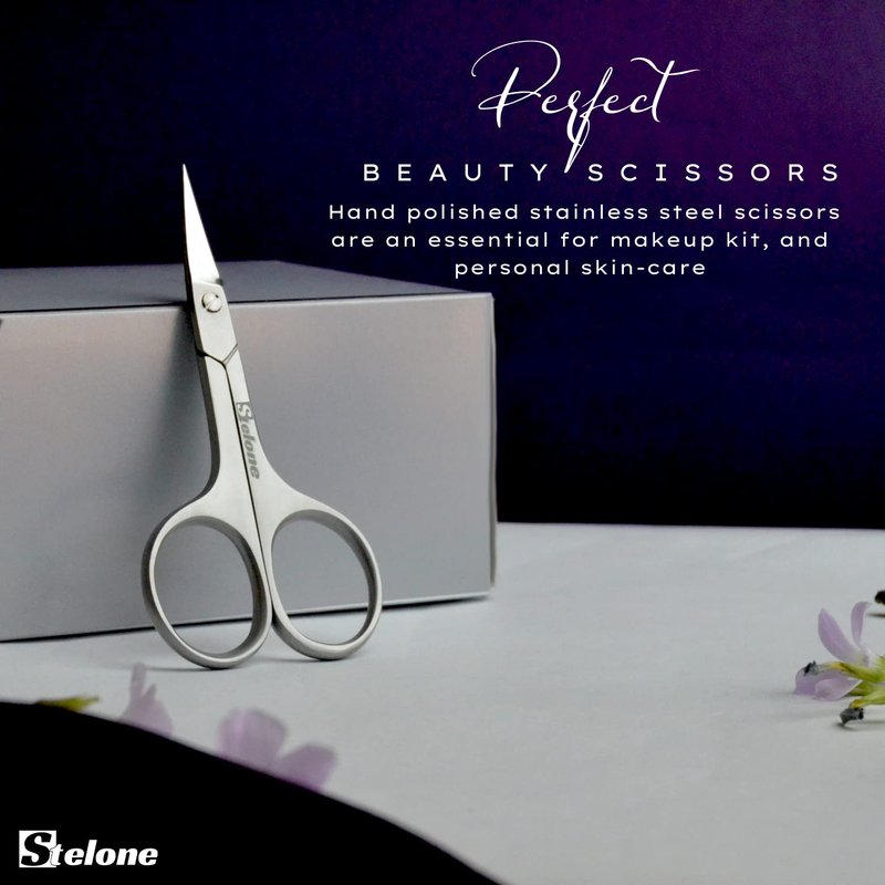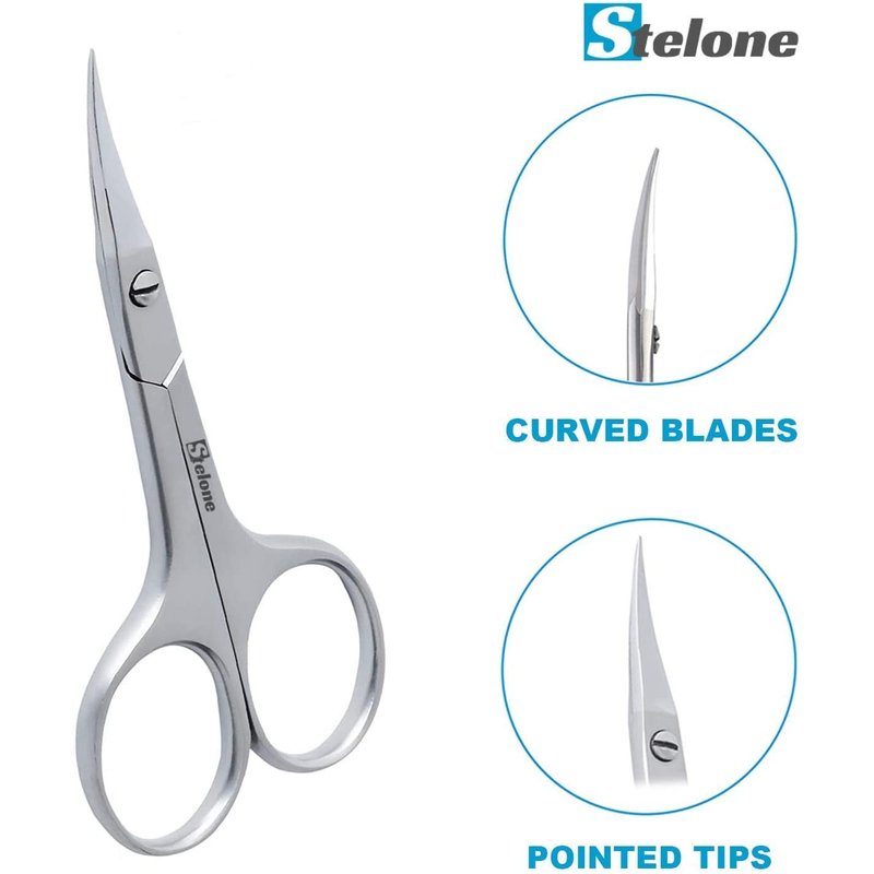 Stelone Multi-Purpose Cuticle Scissors Stainless Steel Curved Blade Little Manicure Scissors - Eyebrow Scissors for Women, Cosmetic & Brow Scissors for Facial Hair & Eyelash Trimming