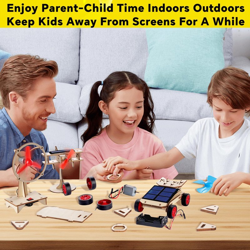 - 【4 Separate STEM Science Kit】Contain Solar Powered Car, Wind Powered Vehicle, Electric Fan, Solar Plane. Total 4 pack of 3D wood puzzles for kids. This Innovative STEM Project is a great gift for boys and girls age 8,9,10,11,12 years old and older.Everything you need is in the box, NO screws,NO soldering and NO glue.