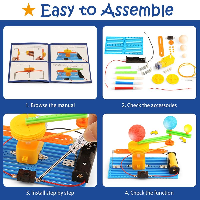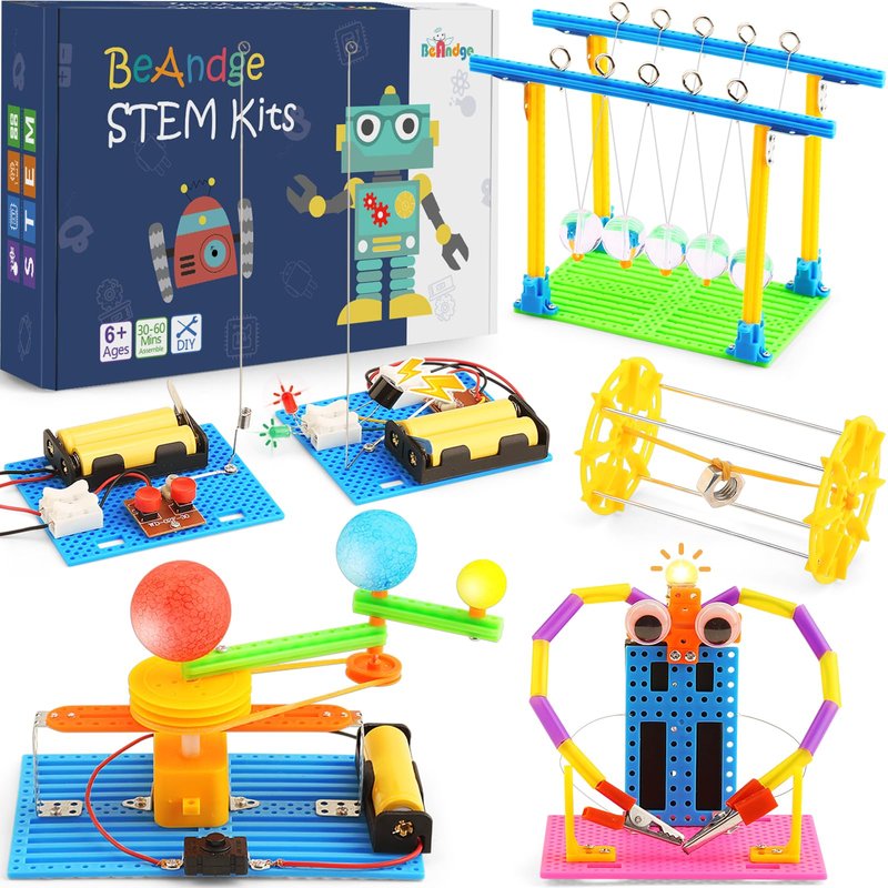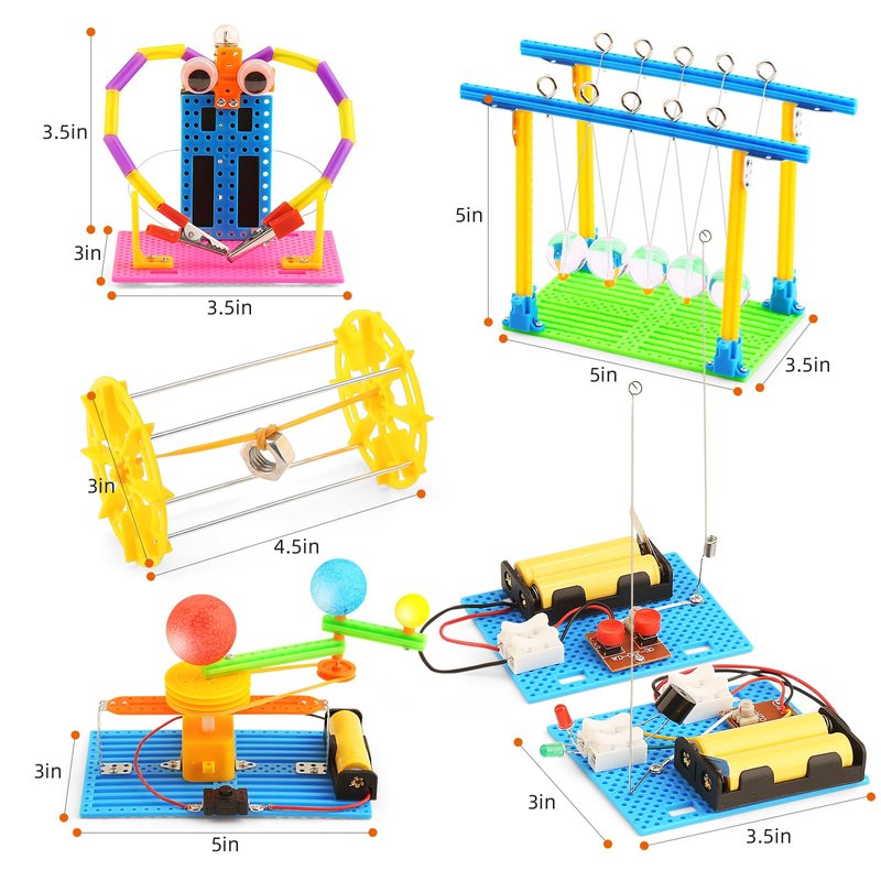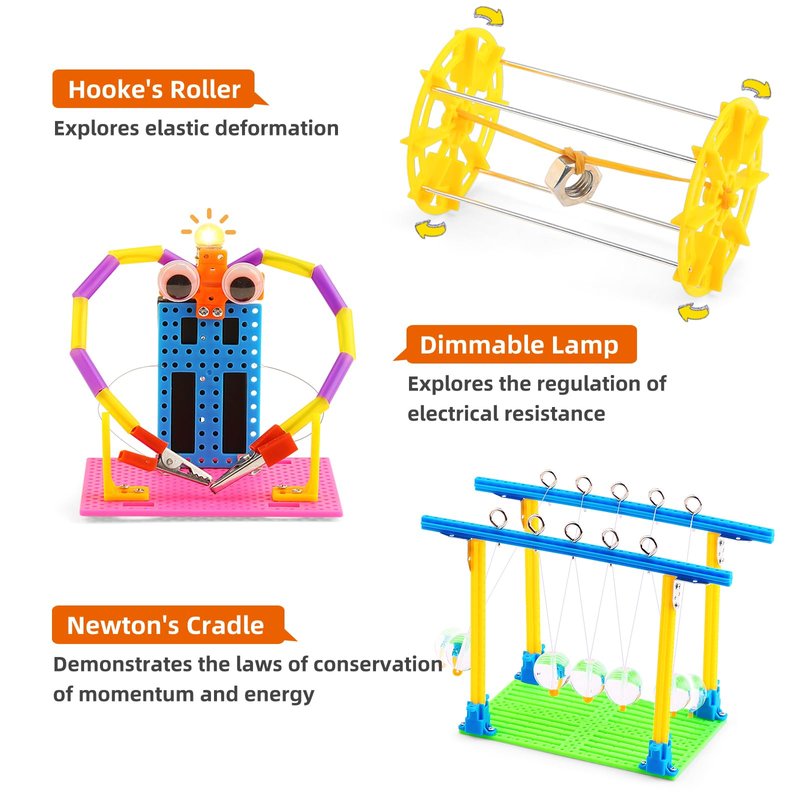 - 5 SET SCIENCE STEM KITS: This kit features 5 exciting models, including a Telegraph, a Newton's Cradle, a Sun-Earth-Moon Orbital Model, a Dimmable Lamp for exploring resistance, and a Hooke's Roller to investigate elasticity
