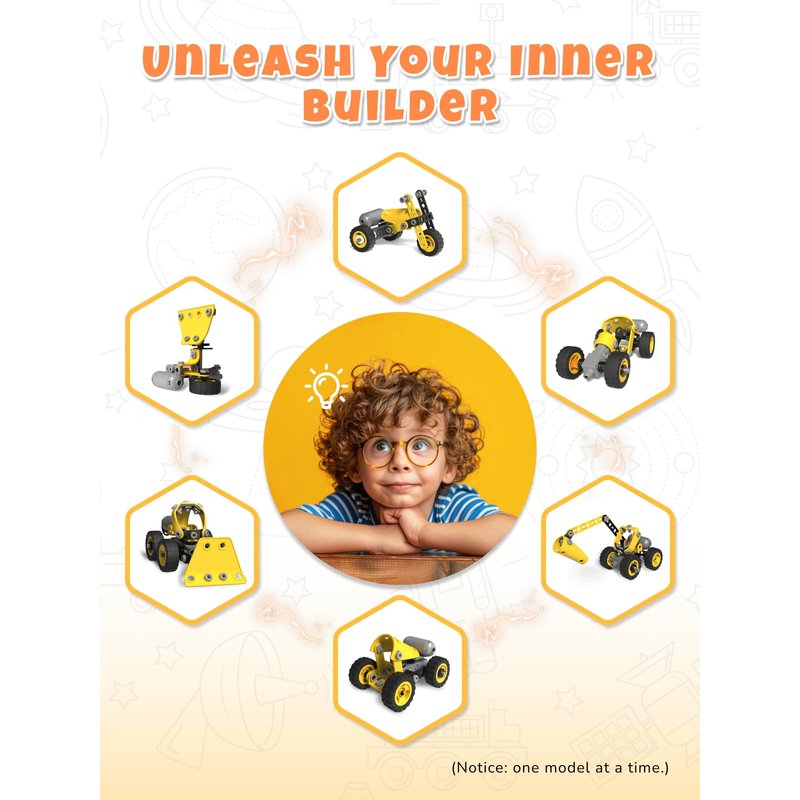 - 10-in-1 STEM Toy Set: Unleash your child's creativity with this versatile building set! It can be constructed into a bulldozer, excavator, tractor, motorcycle, convertible, and various other vehicle models (Notice: one model at a time). Perfect for kids ages 4, 5, 6, 7, 8, and up, providing endless fun and challenges. Ideal for those searching for building toys for kids ages 4-8, toys for ages 5-7, toys for 7 year olds, and toys for boys 6-8.