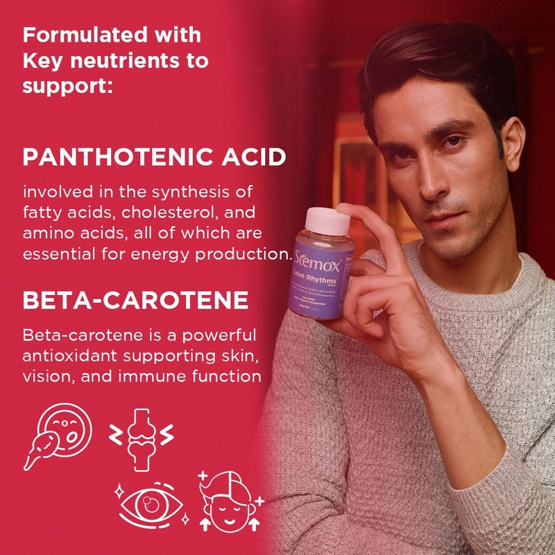 Stemox Love Rhythms is a specially formulated dietary supplement designed to support men's sexual health, skin and bone health, vision, and immunity. With a powerful blend of essential vitamins like A, C, D, and E, along with L-Arginine, Panax Ginseng, and Tribulus Terrestris Extract, Love Rhythms provides comprehensive support for overall male vitality. This supplement also includes Biotin and Zinc to promote healthy skin, hair, and nails, while Gingko Biloba and Selenium support cognitive function and immune health. The easy-to-swallow, vegan, and gluten-free capsules ensure that Love Rhythms fits seamlessly into your daily routine, empowering you to maintain optimal health and well-being. Legal Disclaimer: These statements have not been evaluated by the Food and Drug Administration and are intended for educational purposes only. Dietary supplements are not approved by the FDA. Safety Information: This product is not intended to diagnose, treat, cure, or prevent any disease. Information provided by FloLeaf Naturals LLC USA, including text, graphics, images, and other materials, is for educational purposes only. All claims made by FloLeaf Naturals LLC USA, whether on our website, amazon pages, or marketing materials, reflect the opinions of FloLeaf Naturals LLC USA and are not intended as a substitute for professional medical advice. Individual results may vary. Always consult with a healthcare professional regarding your health and before using any dietary supplement. Keep out of the reach of children. Do not use if the seal is broken. Store in a cool, dry place. Use only as directed and do not exceed the suggested dosage. Pregnant or nursing mothers, children under 18, or individuals with a known medical condition should consult a physician before using this or any dietary supplement. Settling of the product may occur during shipping. Natural colors may darken over time, which does not affect the potency of the product.