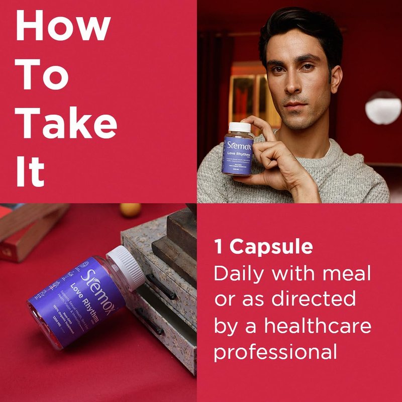 Stemox Love Rhythms 1200MG | L-Arginine, Tribulus Terrestris, Vitamin C, Gingko Biloba | Carefully Formulated Blend Designed For Your Intimate Moments | 60 Capsules | Non-GMO | 100% Organic Supplement