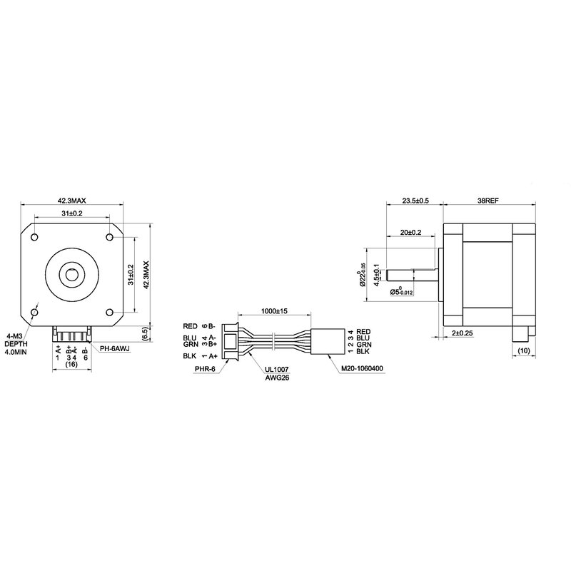 - Step angle 1.8deg, 200 step/revolution