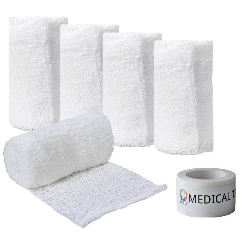 MULTIFUNCTIONAL - Bandage roll features a 6-ply, crinkle weave, 100% cotton gauze for maximum absorbency, and greater aeration perfect to be used as a primary and secondary dressing. 100% COTTON – Made from super soft, washed, fluff-dried cotton that adds bulk and loft that will conform as needed, secure dressings in place and cushion the wound. INDIVIDUALLY WRAPPED – Each gauze roll comes in a sterile individually sealed bag making sure that your fluff gauze gets to you clean, sterile and safe to use. MEDICAL TAPE INCLUDED – Gauze packs include 1 roll of Vakly medical tape that is top quality surgical non-sterile adhesive tape that is 1’’x10 yards long. LATEX FREE - Not made from natural rubber latex ideal for those with latex allergies.