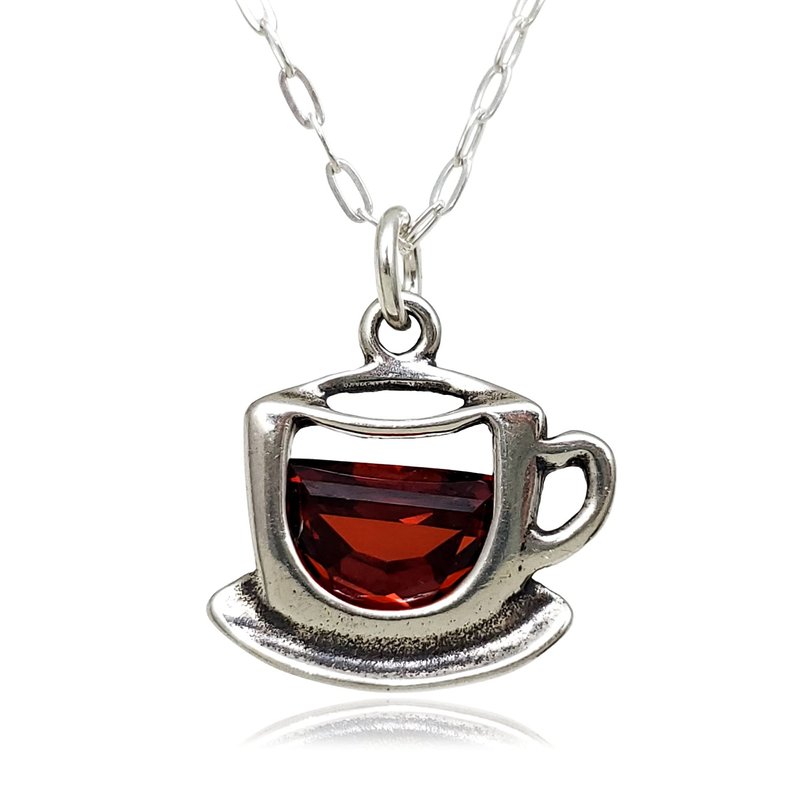 Sterling Silver Coffee Cup Teacup with Red Cubic Zirconia Charm Necklace, 18"