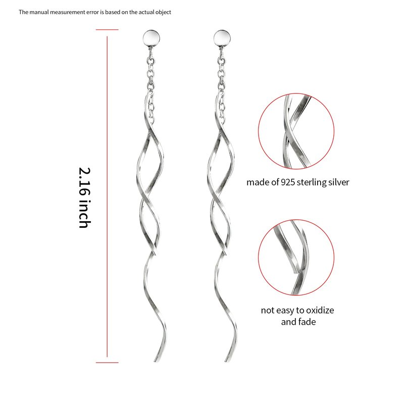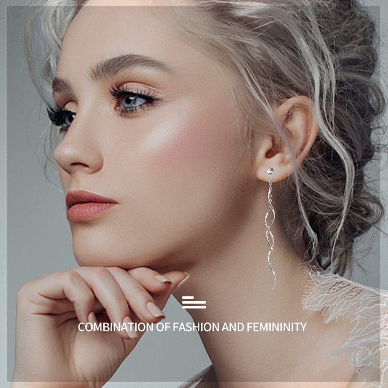 - HANDMADE STERLING SILVER EARRINGS: The perfect long threading earrings are made of 925 sterling silver and handcrafted by our artisans. Solid 925 silver is a hypoallergenic material, making it the perfect choice for sensitive ears. Drop length: 2.58 Inches(with hooks) ,Weight: 0.78 grams, The twisted linear curved dangle earrings are light enough not to weigh down your earlobes and you can wear them all day long.